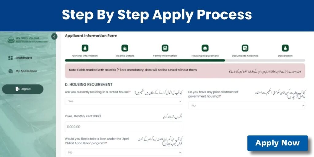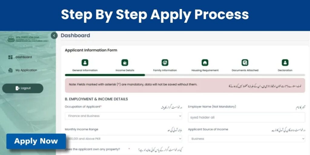 Your monthly income must be declared honestly. The system automatically matches your answers with Punjab housing application documents to ensure fairness in residential plots allotment Punjab.
