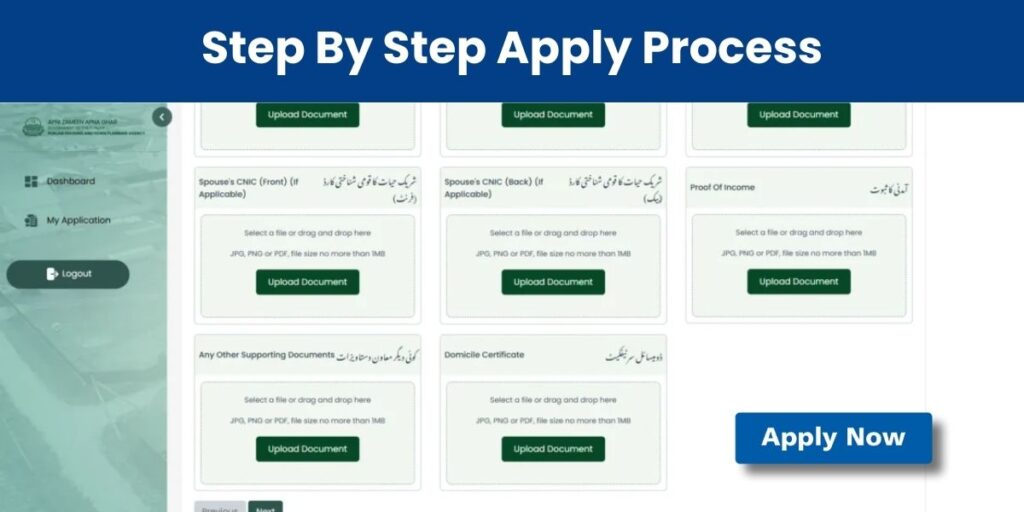 Applicants should keep Punjab housing application documents ready before starting. These include CNIC, proof of income, Punjab domicile requirement, and family details. Once data is submitted, the system verifies it before sending the case for approval under the Punjab plot balloting system.